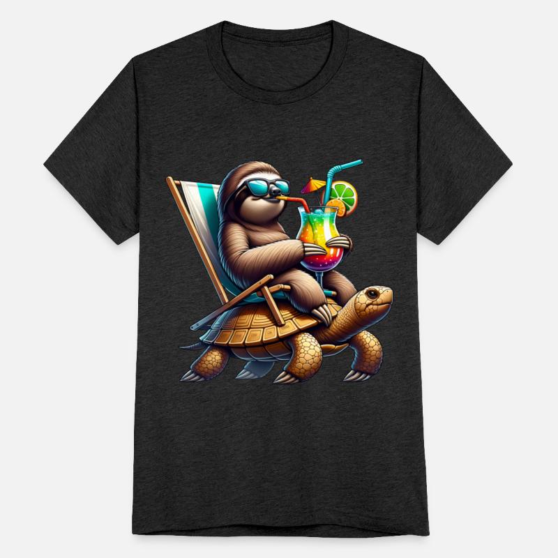 Chill Sloth on Turtle with Tropical Drink