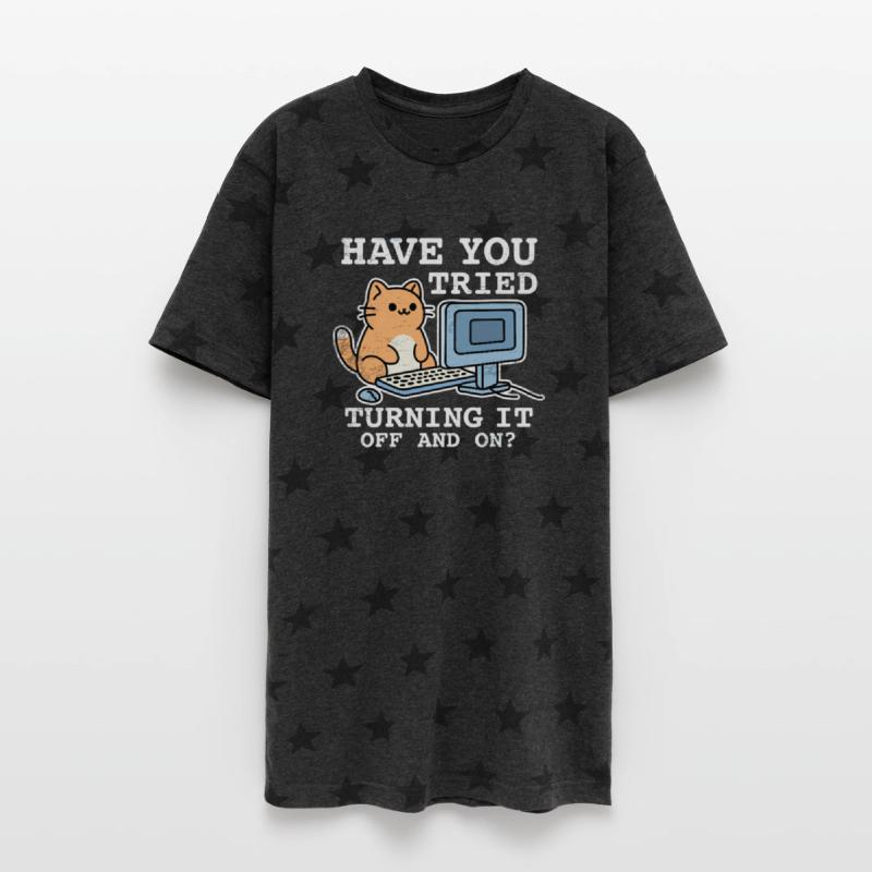 Make a statement with our unisex star-patterned T-shirt! Soft, breathable, and featuring a star pattern, this T-shirt is perfect for your day to day casual look. Its relaxed fit suits all body types, making it a versatile addition to your wardrobe. Ready to shine in your new all-star T-shirt?