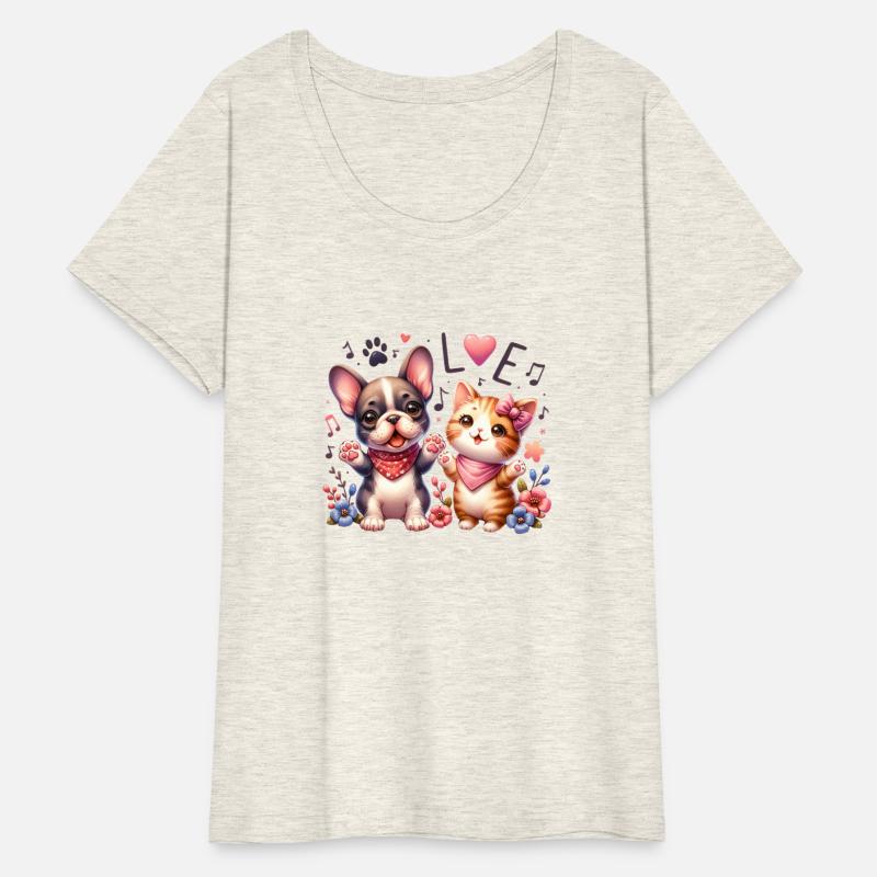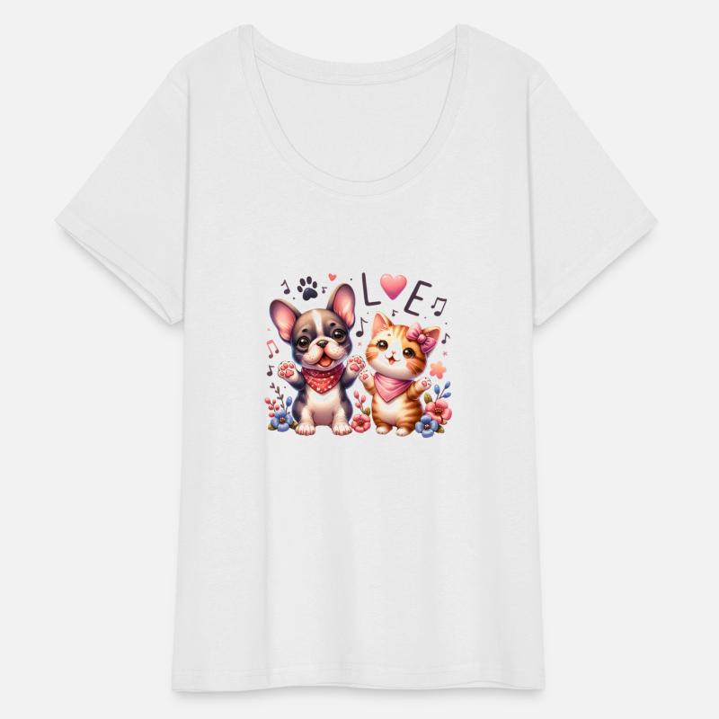 Kawaii cat and frenchie singing
